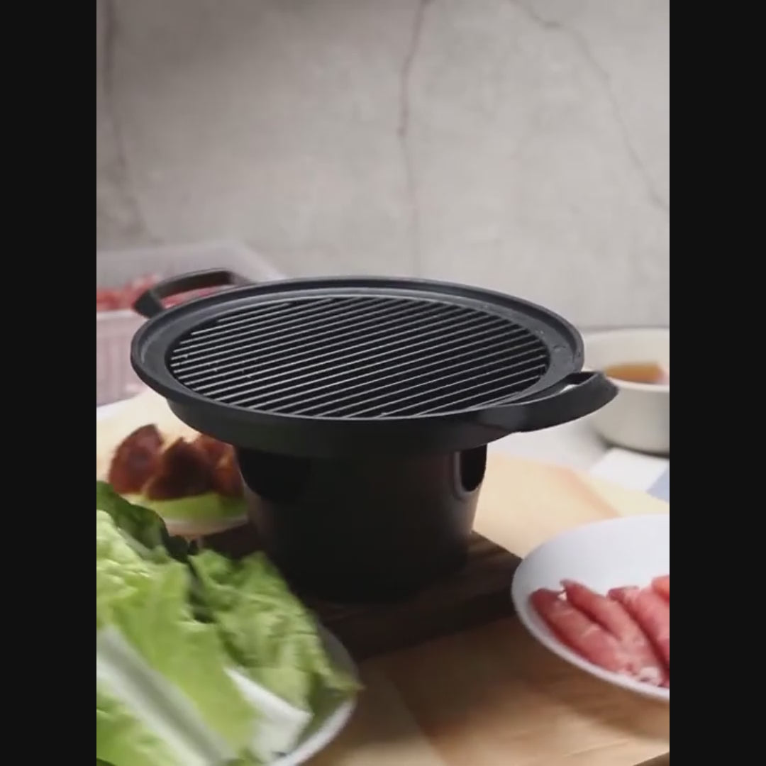 Funciona con carbón vegetal, como las parrillas japonesas tradicionales. También con pastillas de alcohol (keroseno).